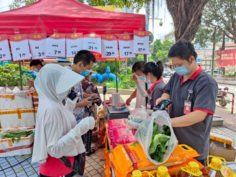 “天不亮我们就启动响应,指定了就近的荔湾店和黄岐店两家线下门店,分别负责两个保供点的设立和销售。”老谢称,保障任务的顺利完成得益于公司各部门的协同作战,“行政部门与政府一直保持着紧密的沟通,实时了解最新疫情状况,对接落实销售位置及进出所需文件。商品部和门店全力加大蔬菜、肉类等民生商品的备货,而物流部门则提前报备需进入封闭地区的车辆牌号等。”
